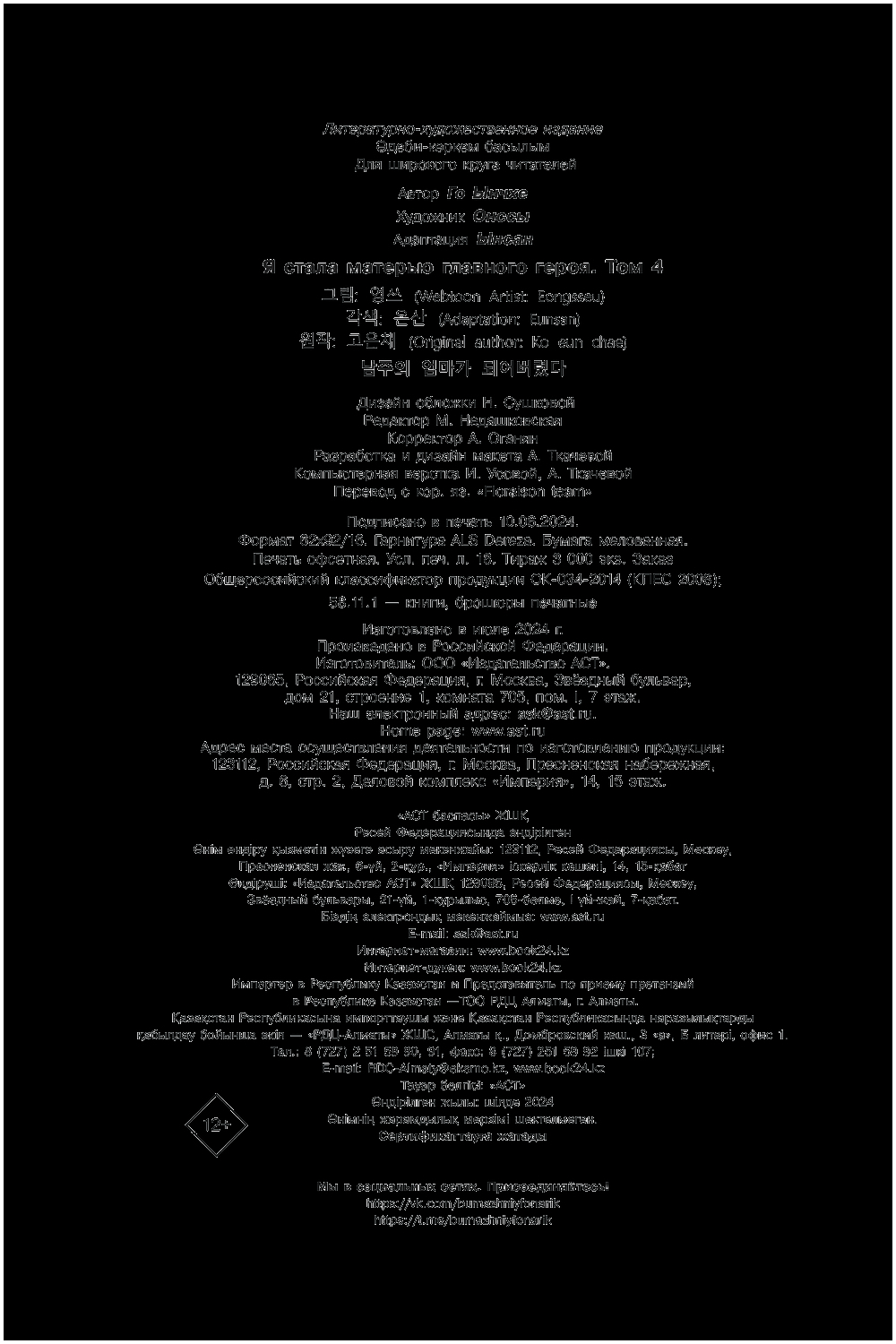Манга АСТ Я стала матерью главного героя. Том 4, твердая обложка (Онссы, Ынсан, Го Ынч)