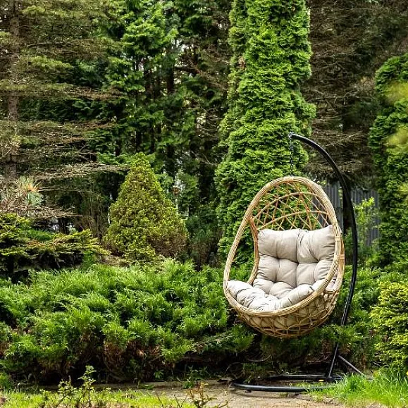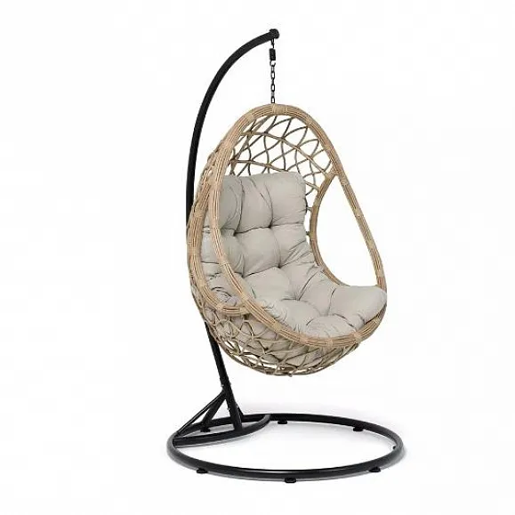 Подвесное кресло Венеция 4SIS из искусственного ротанга, цвет соломенный с бежевой подушкой
