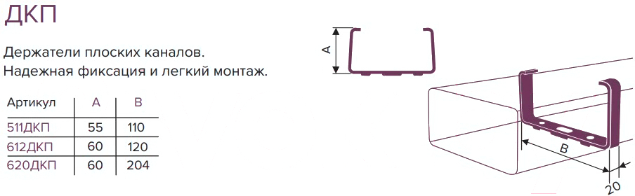 Держатель воздуховода ERA Для плоского воздуховода 612ДКП