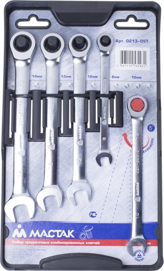 - Комплектация Ключ комбинированный с трещоткой 8, 10, 12, 13, 14 мм