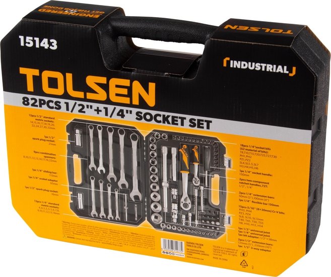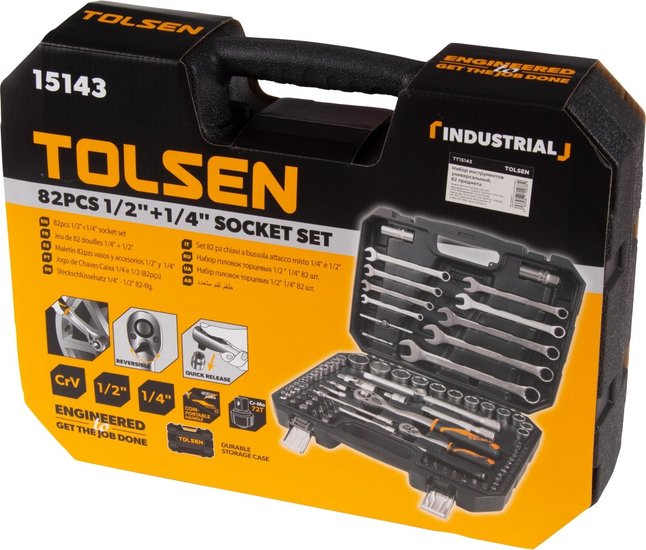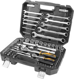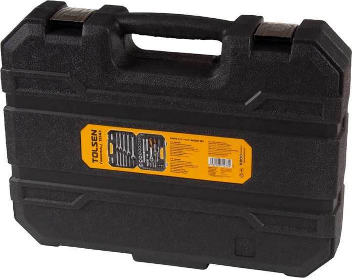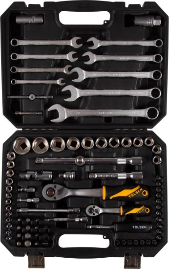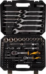 • Комплектация Головки и принадлежности 1/2", Головки и принадлежности 1/4", Насадки торцевые 1/4" 38 мм, Вставки (биты) 5/16" 30 мм, Комбинированные ключи, Кейс