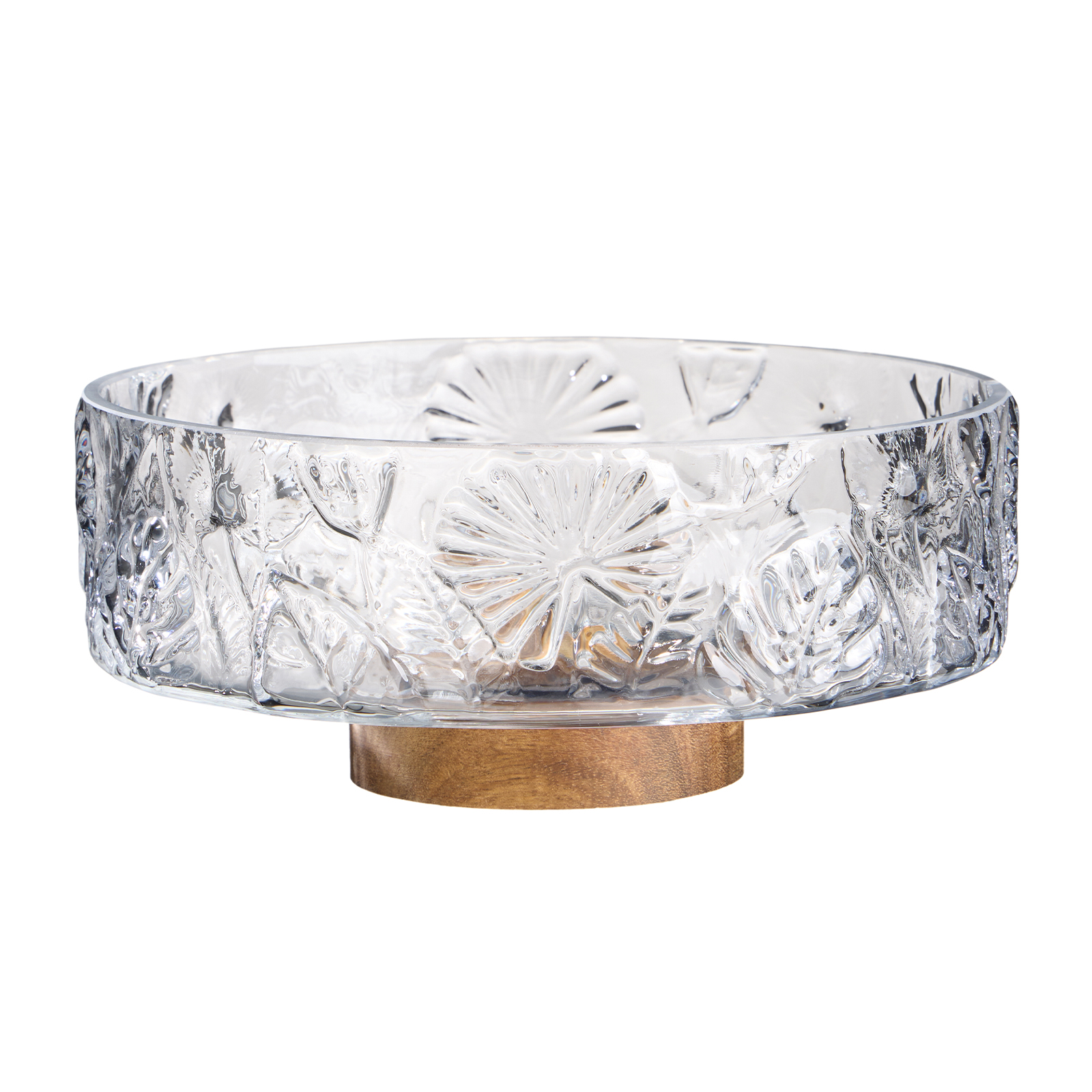 Добавьте вашему интерьеру нотки уюта и гармонии с этой великолепной фруктовницей, выполненной из экологически чистого стекла без содержания свинца. Ее изящный дизайн с растекающимися узорами и натуральное деревянное основание делают каждый элемент особенным.