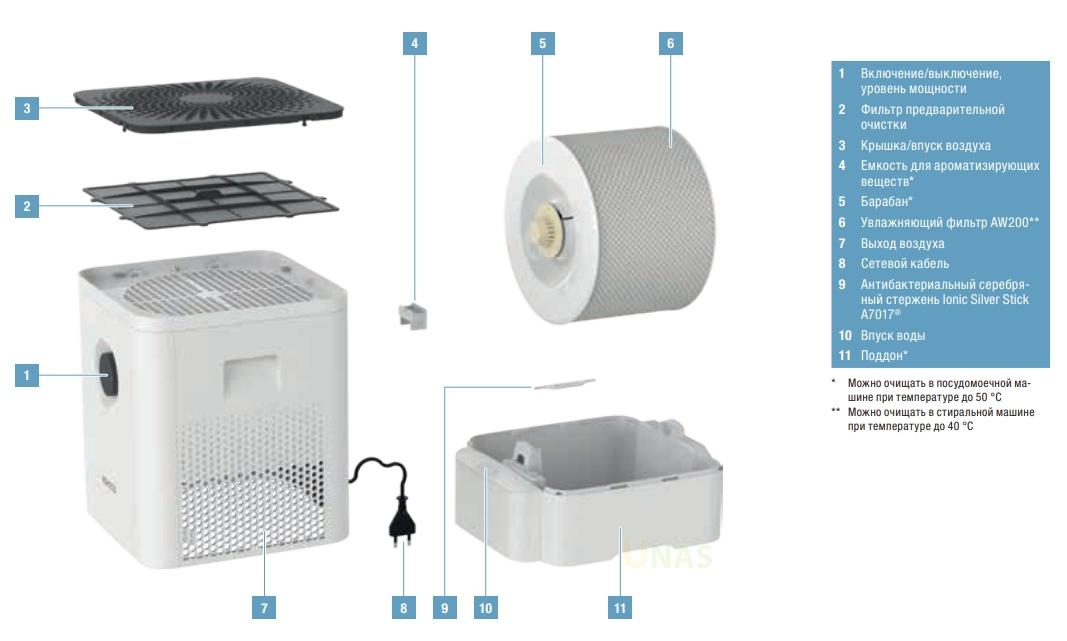 W210 — новая технология увлажнения и очищения воздуха с помощью запатентованной 3D-губки и фронтального залива воды, а также встроенного фильтра предварительной очистки воздуха.