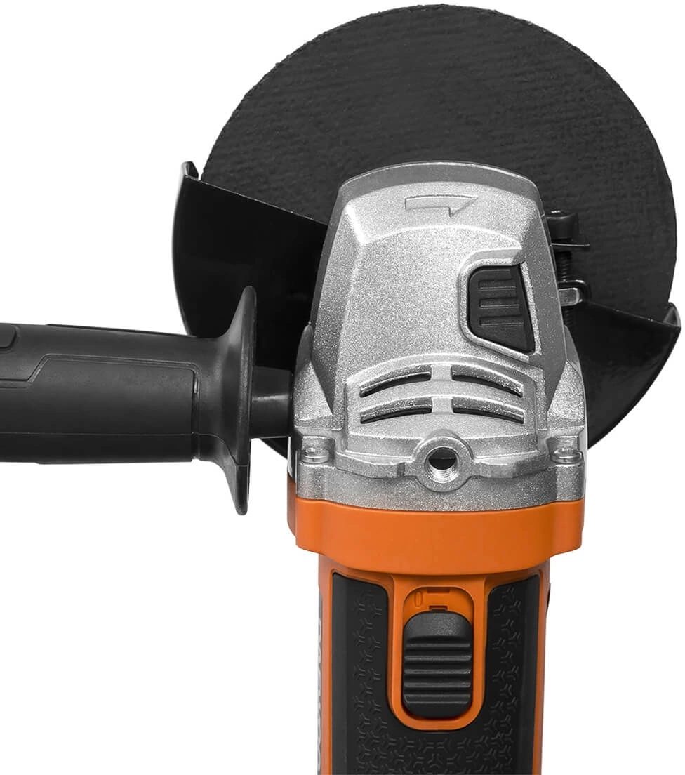ОсобенностиУсиленный редуктор из магниевого сплава. Блокировка шпинделя – для простоты замены диска. Трехпозиционная рукоятка. Изменение положения основной рукоятки. Плавный пуск. Угольные щетки. Защитный кожух.