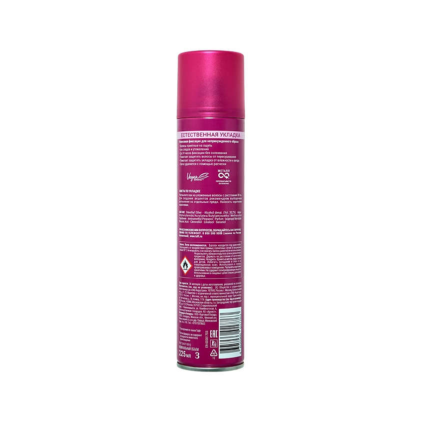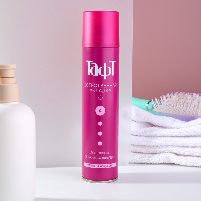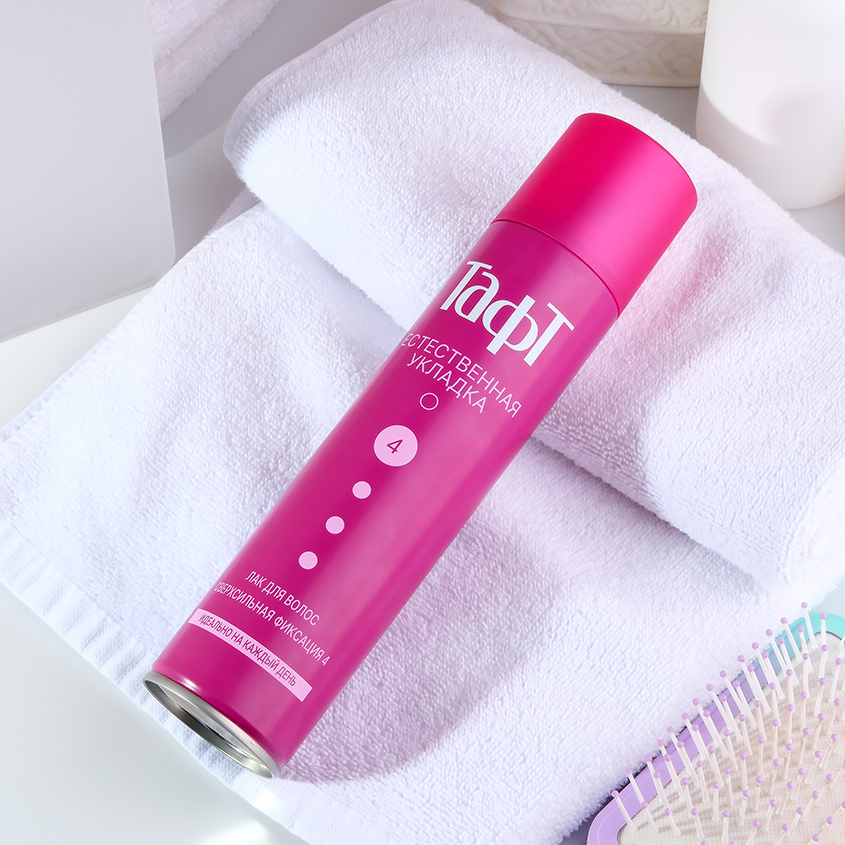 Лак для волос Тафт - невесомая фиксация для непринужденного образа. • Волосы приятные на ощупь • Без следов и утяжеления • До 24 часов фиксации без склеивания • Помогает защитить волосы от пересушивания • Помогает защитить укладку от влажности и ветра • Легко удаляется с помощью расчески • Веган формула - не содержит ингредиенты животного происхождения. • Металл баллона перерабатывается бесконечно.