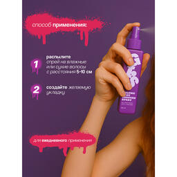 Хорошо взболтать перед использованием. Распылить спрей на влажные или сухие волосы с расстояния