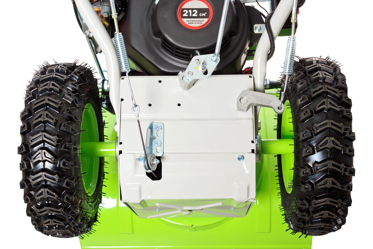 Снегоуборщик оснащён классической популярной трансмиссией с фрикционным диском, удобной в обслуживании и ремонте.