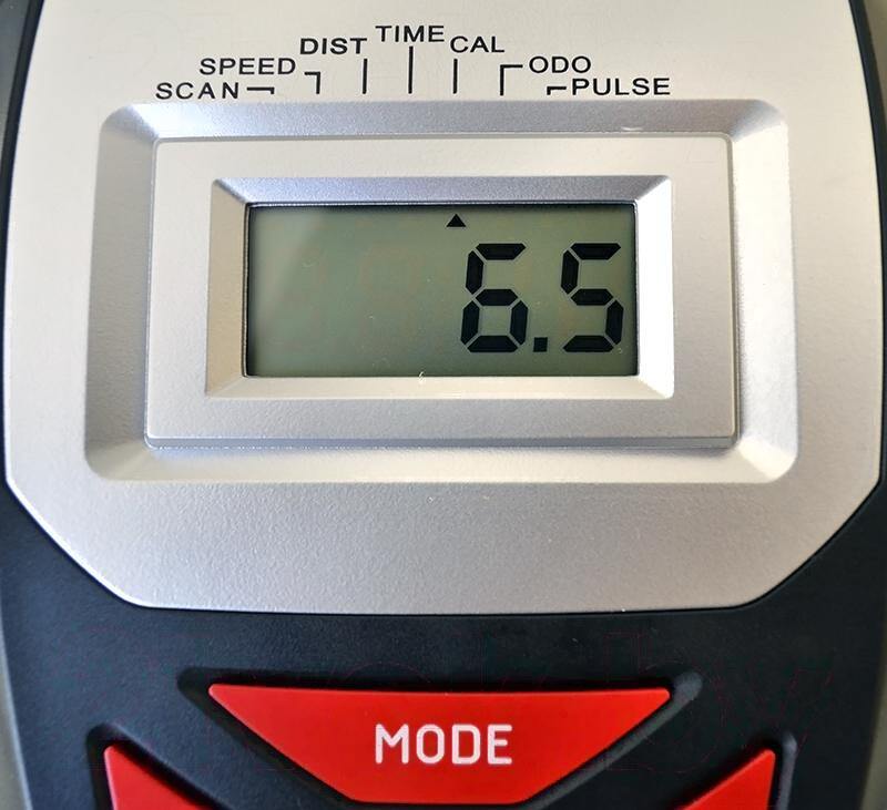 Индикацияпульс, прошедшее время, пройденное расстояние, сожжено калорий, текущая скорость, сканирующий режим (показывает время-скорость-дистанция-калории-пробег-пульс), уровень нагрузки (виден на регуляторе нагрузки), одометр (отображает общее расстояние за все тренировки)