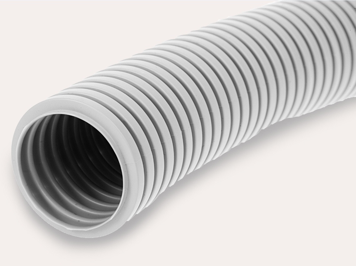 DKC Труба ПВХ гибкая гофр. д.16мм, лёгкая без протяжки, 25м, цвет серый