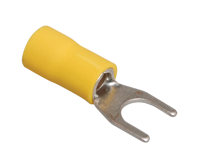 Наконечник вилочный предназначен для оконцевания опрессовкой проводов с медными жилами и используется при монтаже электрических узлов, где предусмотрено соответствующее контактное соединение на основе винтовой фиксации. Провести полный демонтаж крепежного соединения возможно, лишь ослабив винтовую фиксацию.