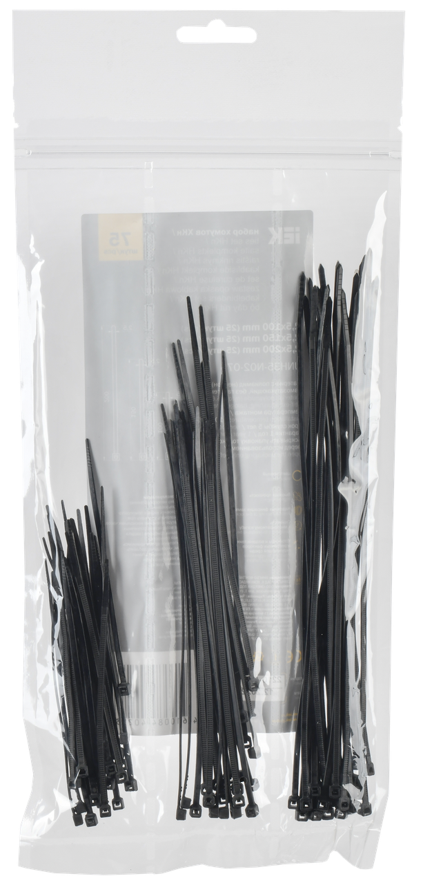 Набор хомутов 2,5х100; 2,5х150; 2,5х200 черные (75шт./упаковка) IEK