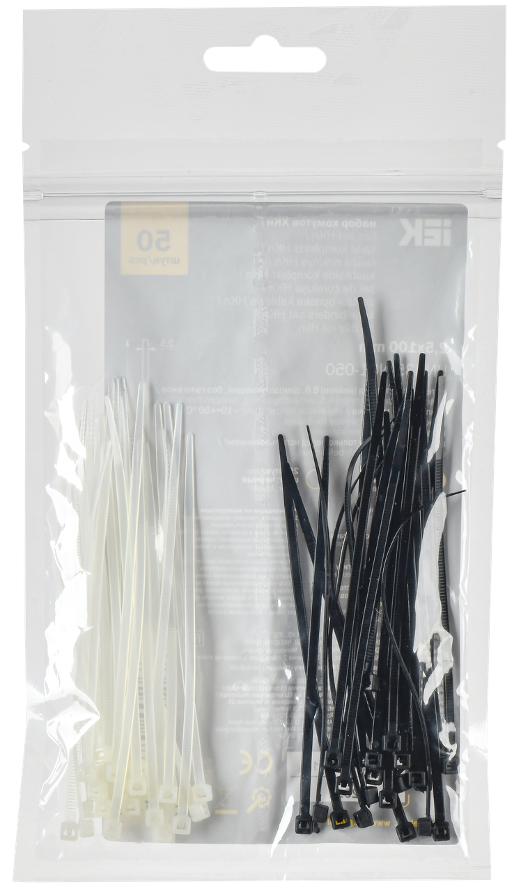 Набор хомутов 2,5х100 (25 белых; 25 черных) (50шт./упаковка) IEK