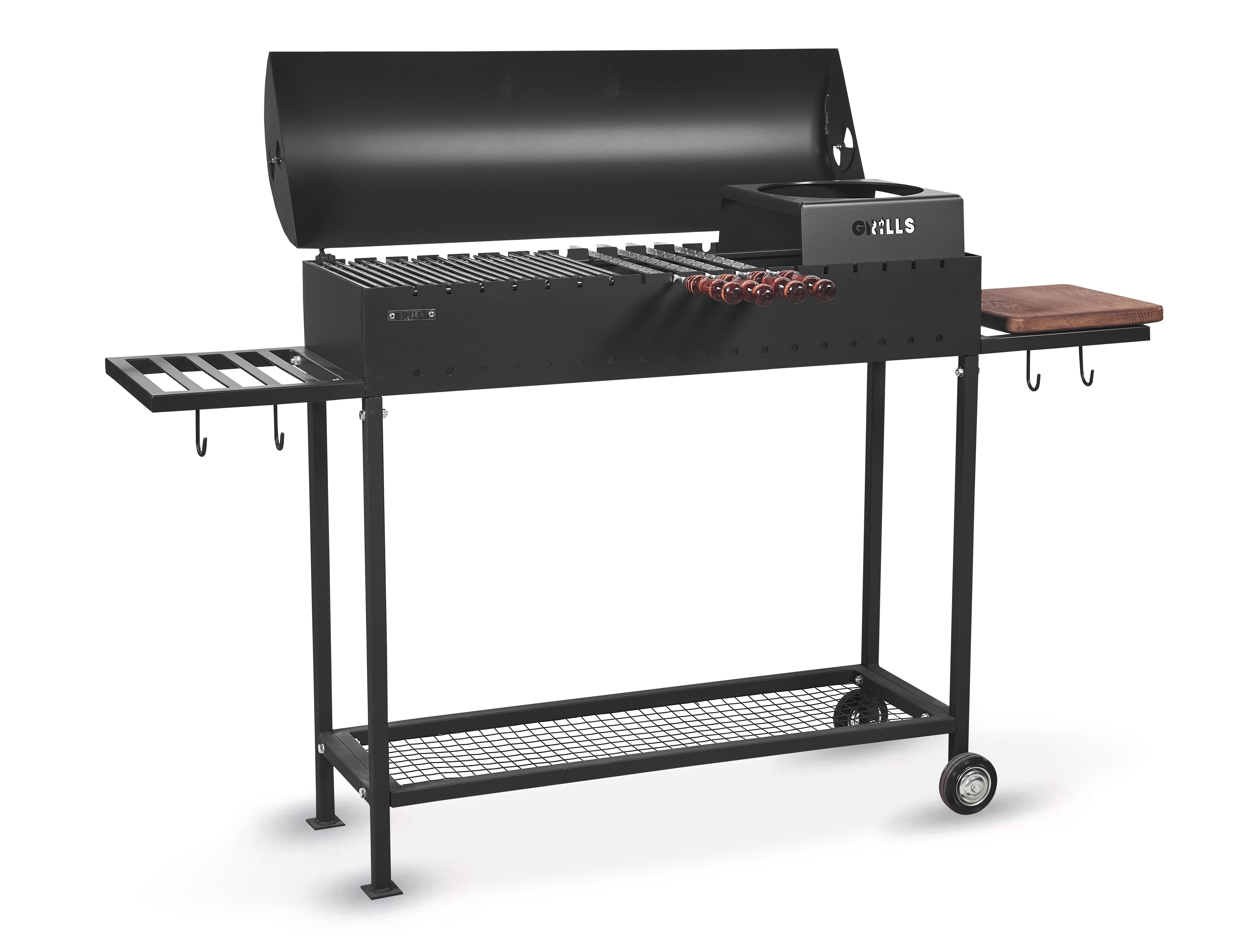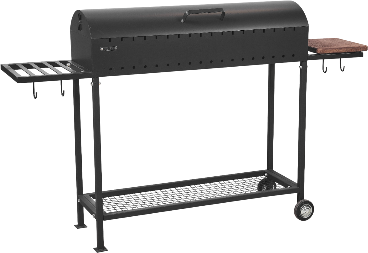 - Оснащение столешница, столешница-решетка, крючки для аксессуаров, жаровня, крышка, ручка, дровница, ножки (2 шт.), колеса (2 шт.), заслонка