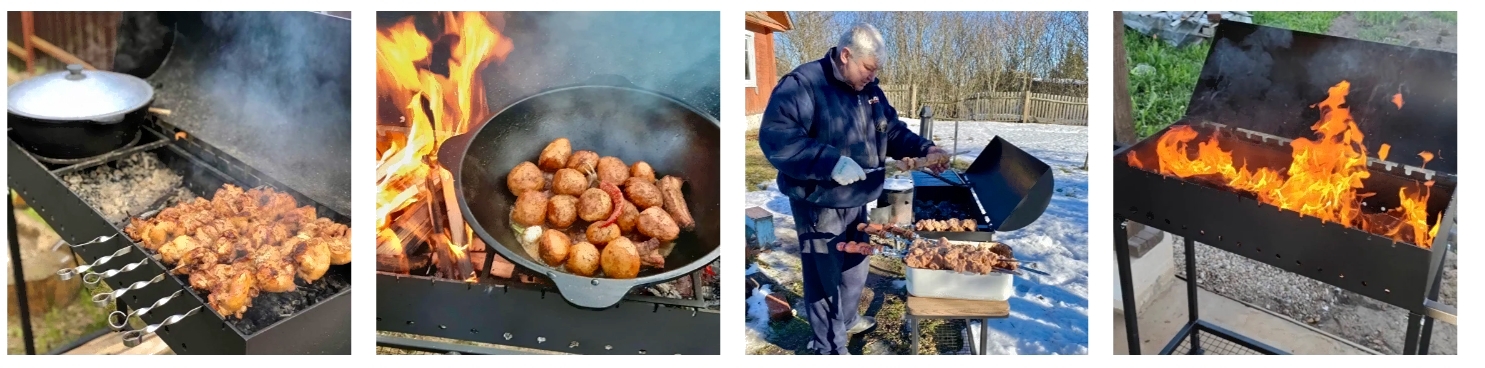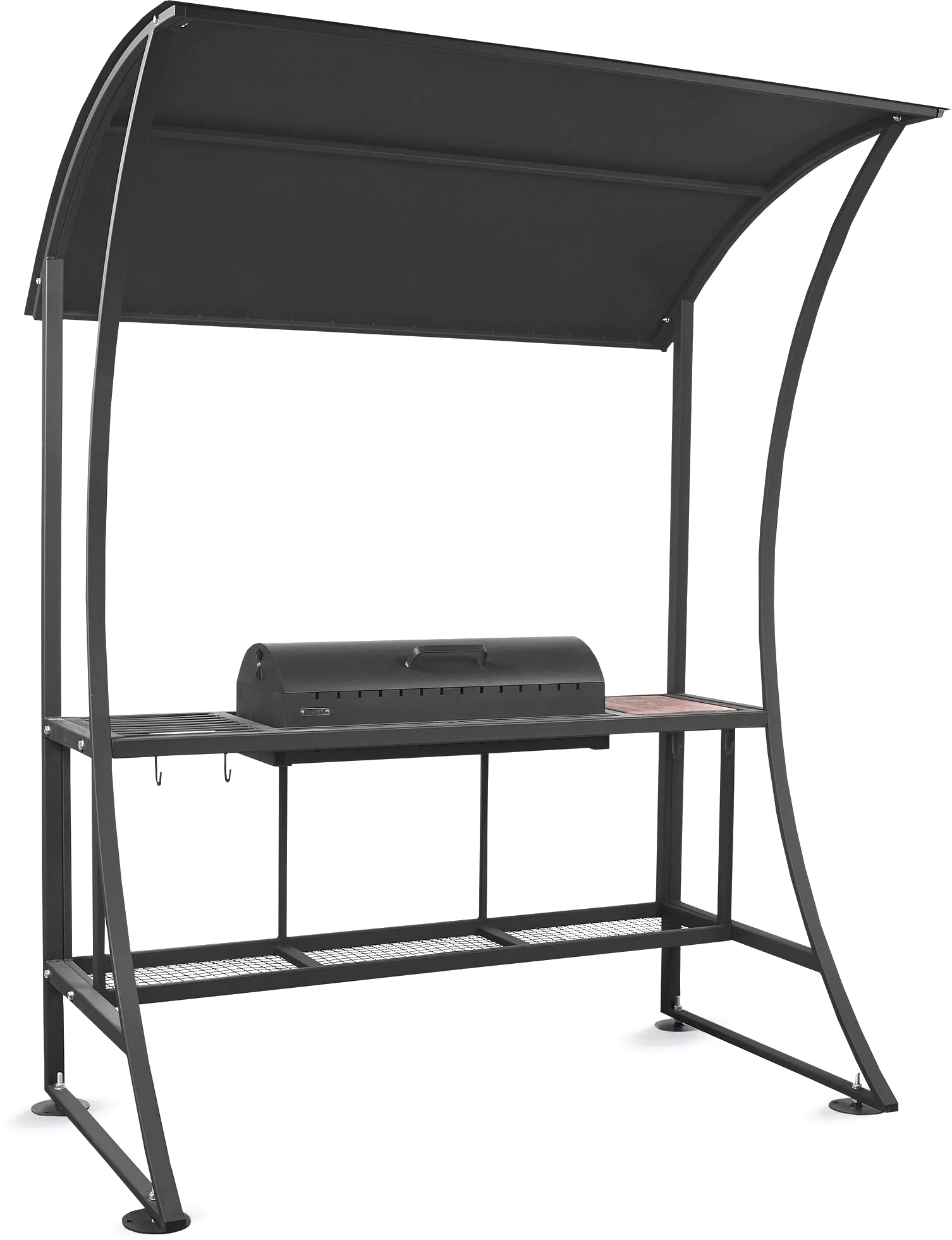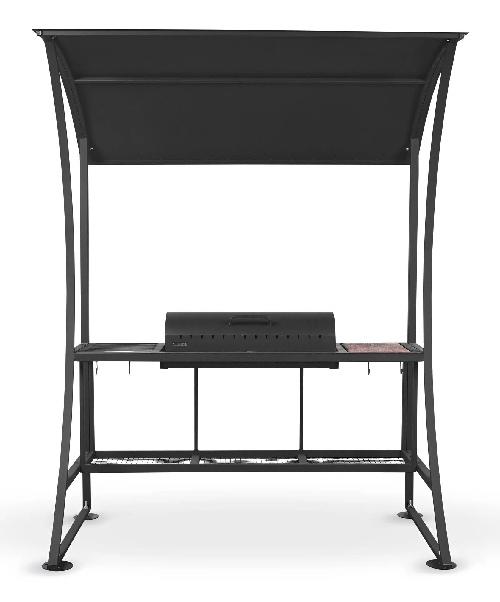 • Оснащение крыша, крышка, столешница, столешница-решетка, дровница, ножки (4 шт.), ручка, жаровня, крючки для аксессуаров