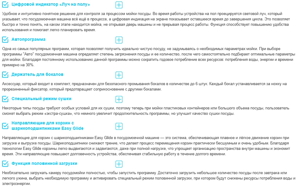 • Функциональные особенности половинная загрузка, использование средств 3 в 1, третий короб