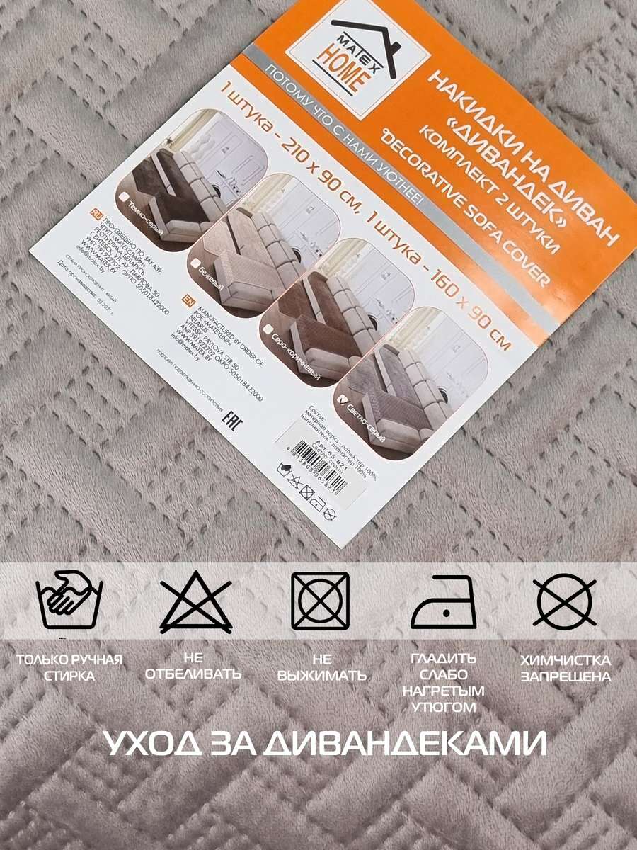 Комплект накидок на диван MATEX Дивандек / 65-821 (2шт, светло-серый)