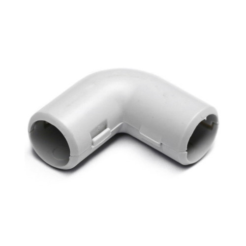 Колено предназначено для выполнения поворотов трассы. Его разъемная конструкция позволяет устанавливать аксессуар на уже смонтированные участки. Колено совместимо с трубами диаметром 25 мм. Цвет аксессуаров - серый, RAL 7035. Степень пыле- и влагозащиты - IP 40.