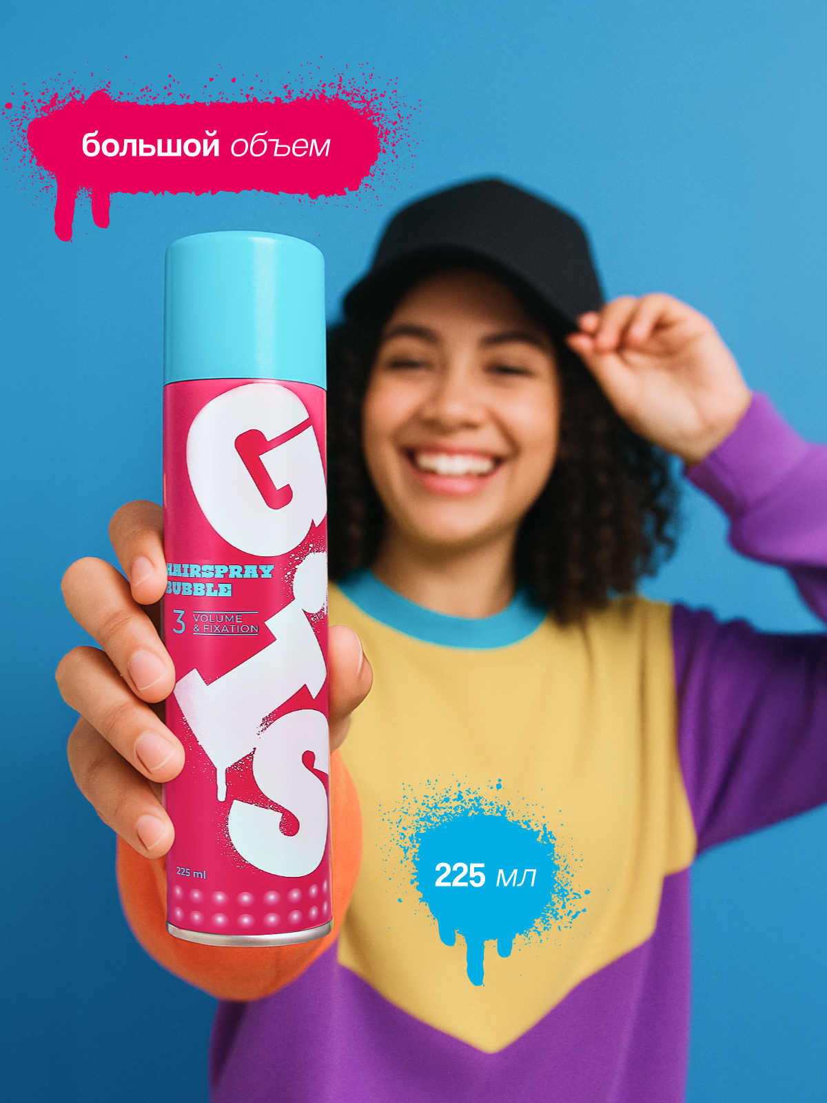 Лак для волос `GIS` BUBBLE супер объем и невидимая фиксация 225 мл