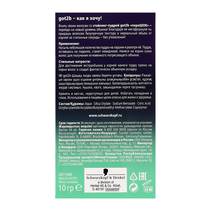 Всыпь своим волосам со стайлинг-пудрой got2b «пороШОК» – перейди на новый уровень объема! Благодаря ее мегаформуле ты придашь волосам безупречную текстуру и нереальный объем у корней за считанные секунды – без утяжеления!