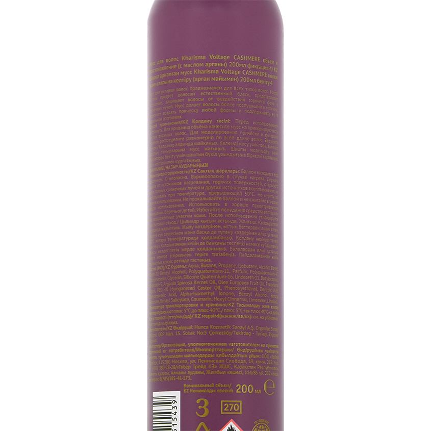 Мусс для волос `KHARISMA VOLTAGE` CASHMERE объем и восстановление (с маслом арганы) 200 мл