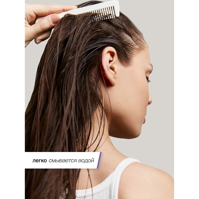 Взять небольшое количество помады на ладонь, растереть и распределить на чистые сухие волосы от