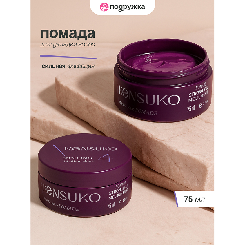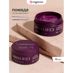 Помада для укладки волос KENSUKO CREATE сильной фиксации незаменима для формирования стильных и современных причесок без применения дополнительных укладочных средств. Прекрасно подходит для укладки вьющихся и жестких волос. Стайлинг надежно фиксирует волосы, не образуя «цементного эффекта», увлажняет и смягчает локоны. Помада для волос легко смывается водой.