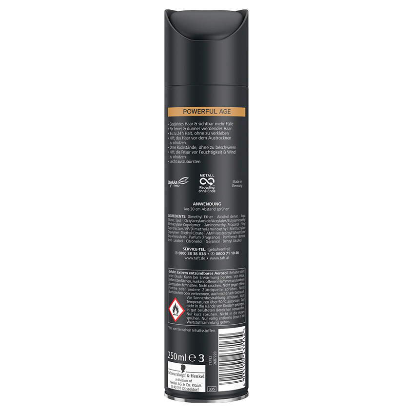Dimethyl Ether, Alcohol denat., Aqua (Water, Eau), Octylacrylamide/Acrylates/Butylaminoethyl Methacrylate Copolymer, Aminomethyl Propanol, Vinyl Caprolactam/VP/Dimethylaminoethyl Methacrylate Copolymer, Triethyl Citrate, AMP-Isostearoyl Wheat/Corn/Soy Amino Acids, Parfum (Fragrance), Panthenol, Benzoic Acid, Linalool, Citronellol, Geraniol, Benzyl Alcohol