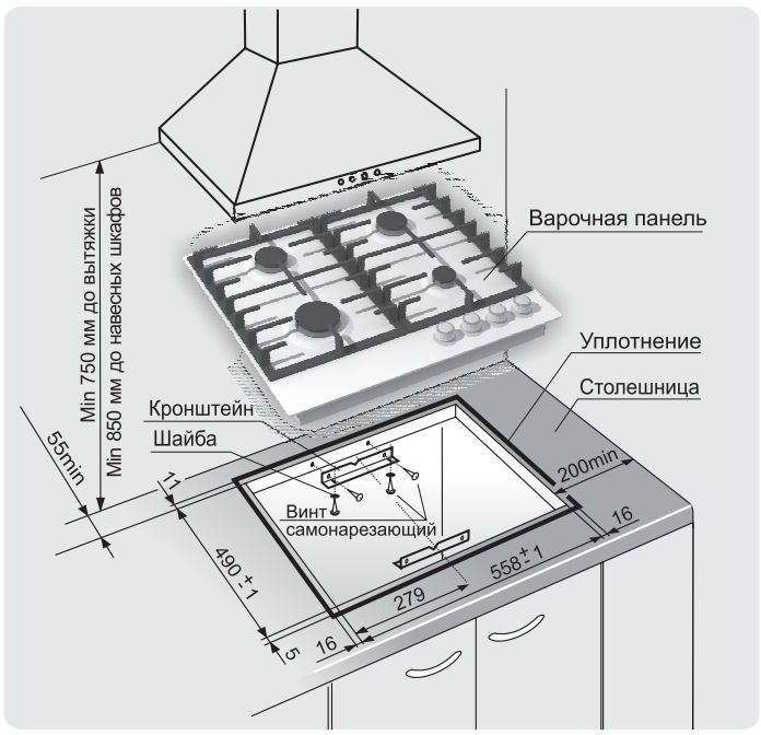 • Суммарная мощность газовых конфорок 7.8 кВт