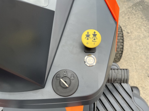 * Простое и интуитивное управление: Рычаги скорости и включения ножа расположены удобно для оператора.