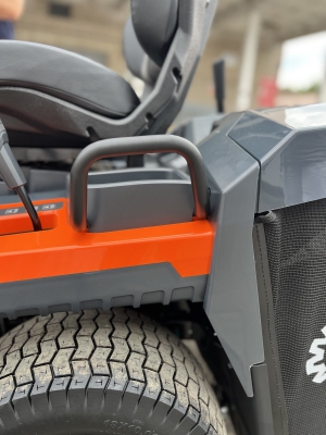 • Широкая дека и большой травосборник уменьшают количество проходов и частоту остановок.