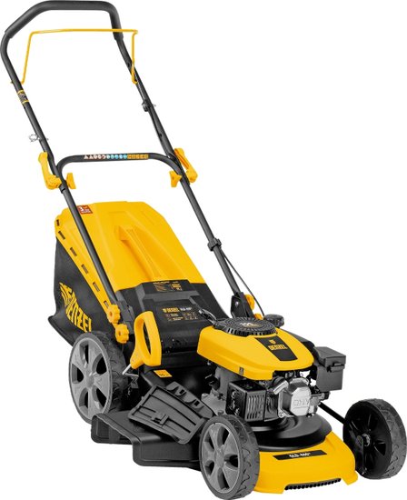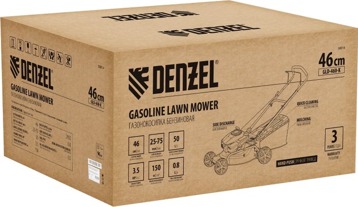 Комплектация- Газонокосилка в сборе с ножом и колесами;- Травосборник;- Дефлектор бокового выброса;- Нижняя часть рукоятки;- Верхняя часть рукоятки;- Комплект крепежа;- Ключ свечной;- Фиксатор троса;- Заглушка для мульчирования;- Руководство по эксплуатации с гарантийным талоном.