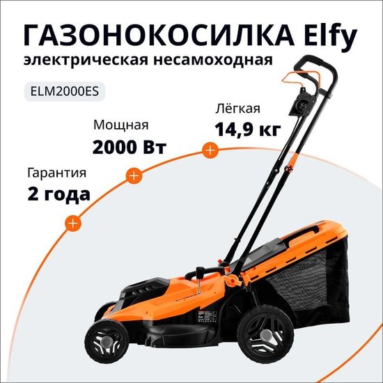 • Комплектация - Газонокосилка- Травосборник- Рукоять- Стойка рукояти- Комплект крепежа- Инструкция по эксплуатации