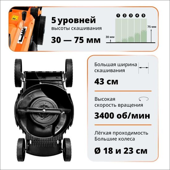 • Ширина обработки 43 см