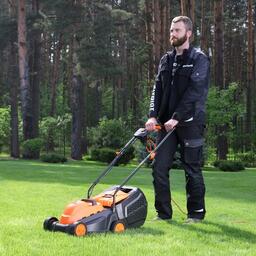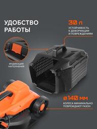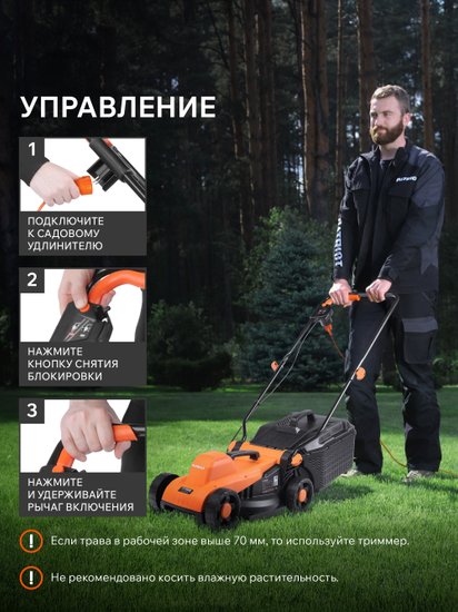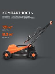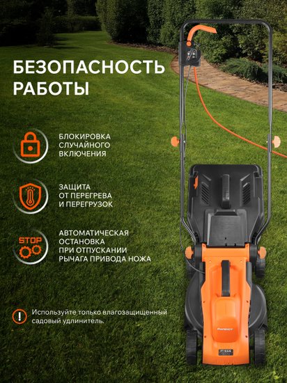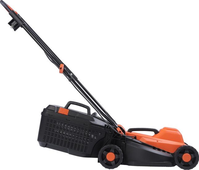 Комплектация- Электрическая газонокосилка в сборе- Колеса: 4 шт.- Нижняя и верхняя часть травосборника- Комплект для сборки рукоятки (ручки, винты с барашками, шайбы)- Инструкция с гарантийным талоном