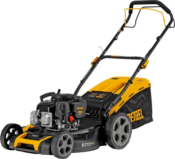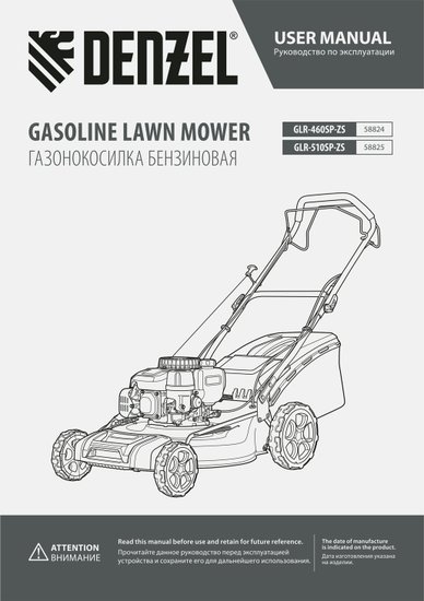 Комплектация- Газонокосилка в сборе с ножом и колесами- Травосборник- Дефлектор бокового выброса- Нижняя часть рукоятки- Верхняя часть рукоятки- Комплект крепежа- Ключ свечной- Фиксатор троса- Заглушка для мульчирования- Руководство по эксплуатации с гарантийным талоном