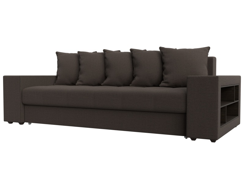Диван прямой Дубай полки справа Рогожка Амур 05 коричневый