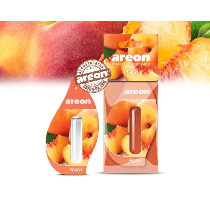 Ароматизатор від бренду AREON моделі Peach необхідний для розповсюдження приємного запаху в салоні транспортного засобу, завдяки чому приглушає різноманітні неприємні запахи, та забезпечує впевненість та врівноваження під час поїздки. Ця серія ароматизаторів має оригінальну форму виконання, включаючи різні екстракти запахів та різні кольори. Дає можливість розповсюдження приємного запаху цілодобово, ароматизатор має тривалий термін експлуатації. Такий аксесуар в салон може використовуватися для ароматизації як в якості парфюма в автомобілі, так і в якості освіжувача повітря будь-де. Не рекомендується постійне стикання з різноманітними пластмасовими деталями та елементами салону автомобіля.