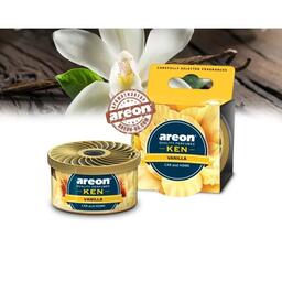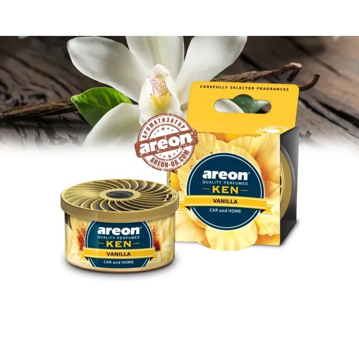 Ароматизатор від бренду AREON моделі KEN Vanilla необхідний для розповсюдження приємного запаху в салоні транспортного засобу, завдяки чому приглушає різноманітні неприємні запахи, та забезпечує впевненість та врівноваження під час поїздки. Ця серія ароматизаторів має оригінальну форму виконання, включаючи різні екстракти запахів та різні кольори. Дає можливість розповсюдження приємного запаху цілодобово, ароматизатор має тривалий термін експлуатації. Такий аксесуар в салон може використовуватися для ароматизації як в якості парфюма в автомобілі, так і в якості освіжувача повітря будь-де. Не рекомендується постійне стикання з різноманітними пластмасовими деталями та елементами салону автомобіля.