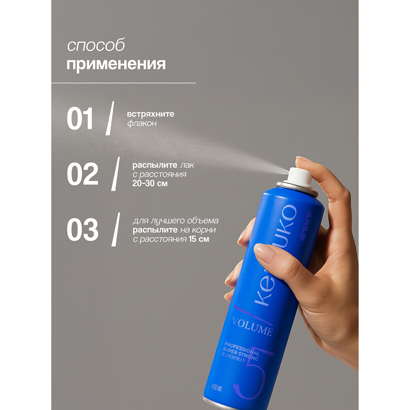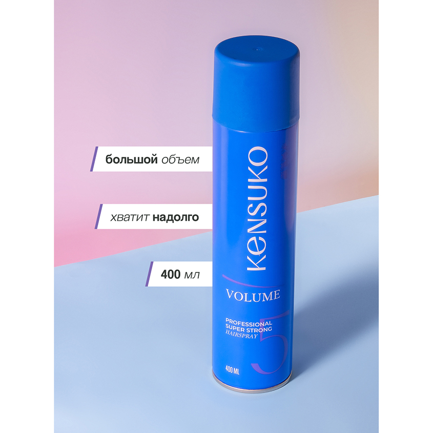 Лак для волос `KENSUKO` PROFESSIONAL Объем и сверхсильная фиксация 400 мл