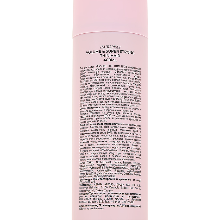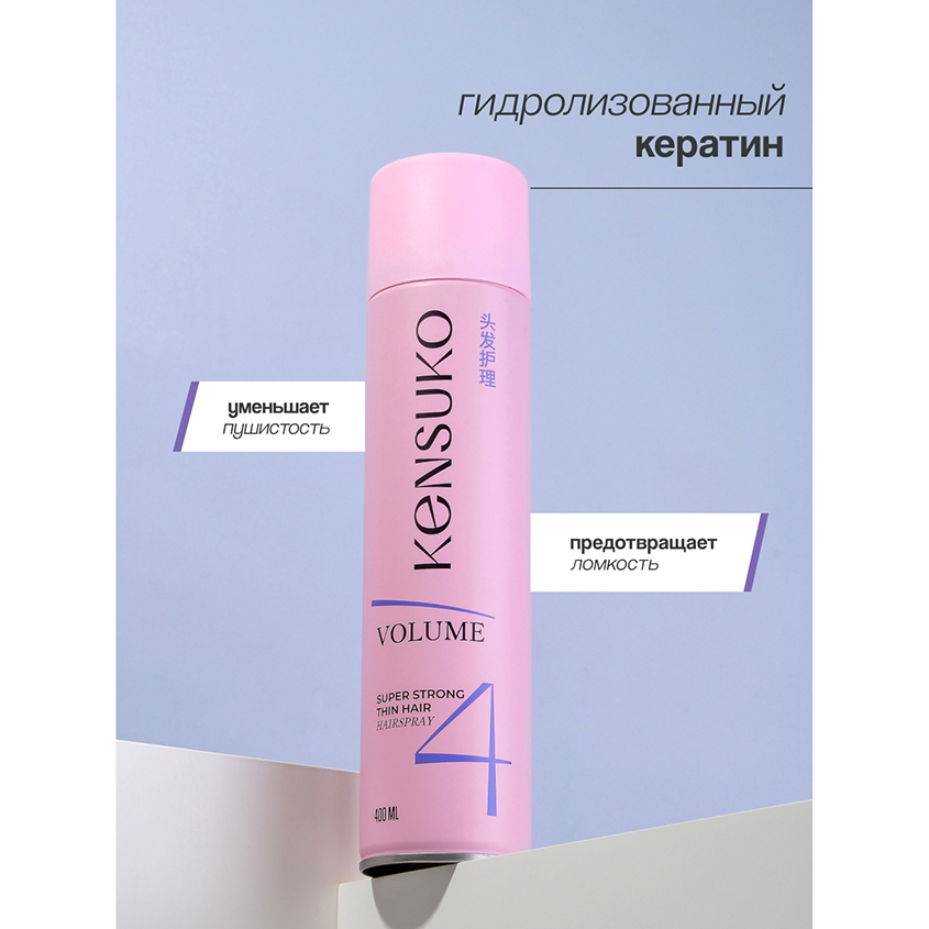 Лак для волос `KENSUKO` Объем для тонких волос (суперсильной фиксации) 400 мл