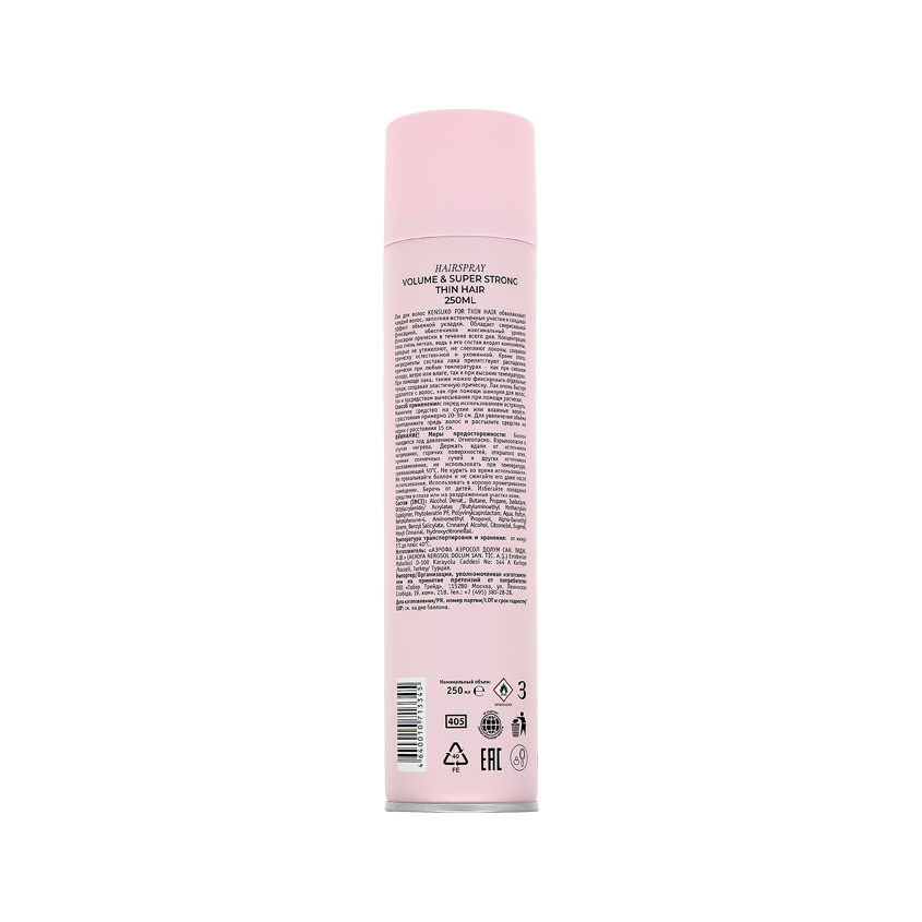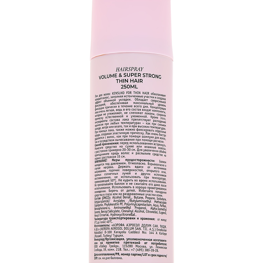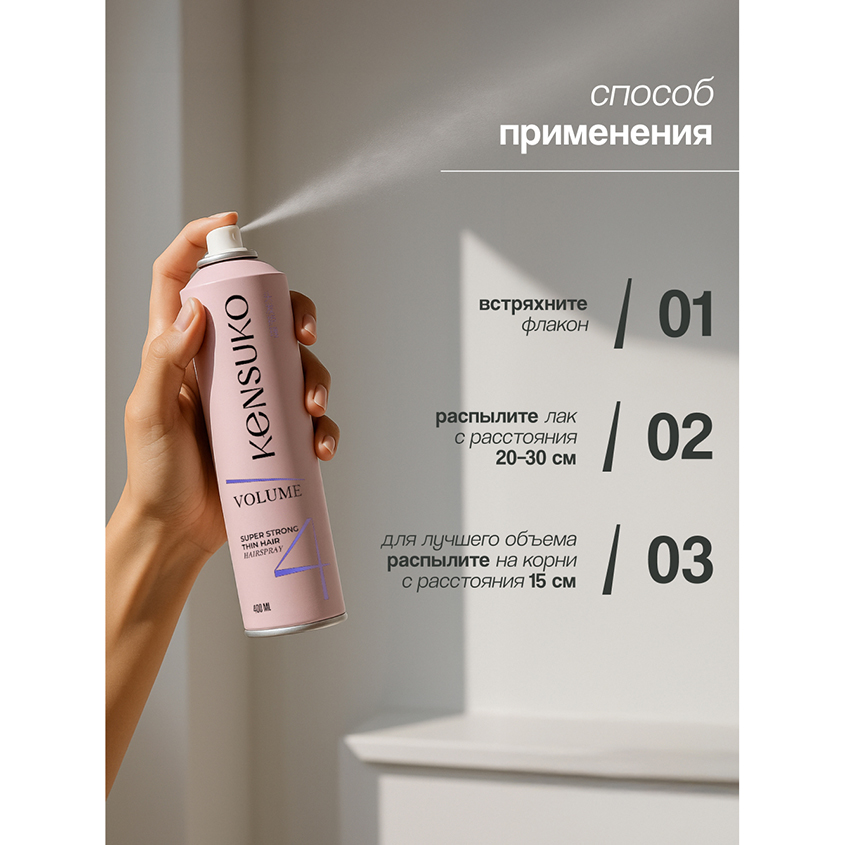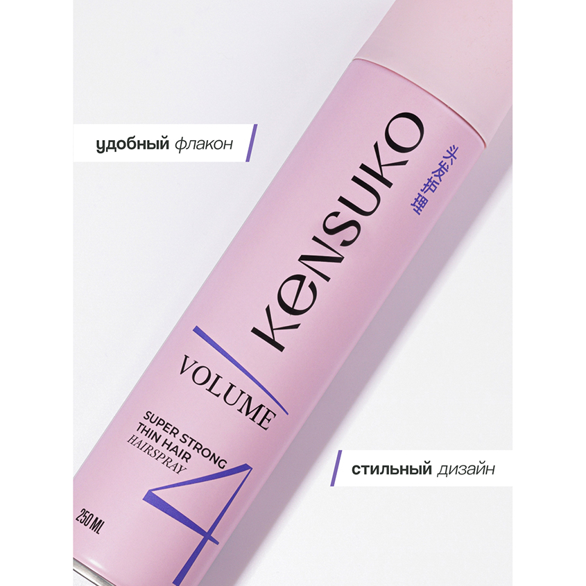 Лак для волос `KENSUKO` Объем для тонких волос (суперсильной фиксации) 250 мл
