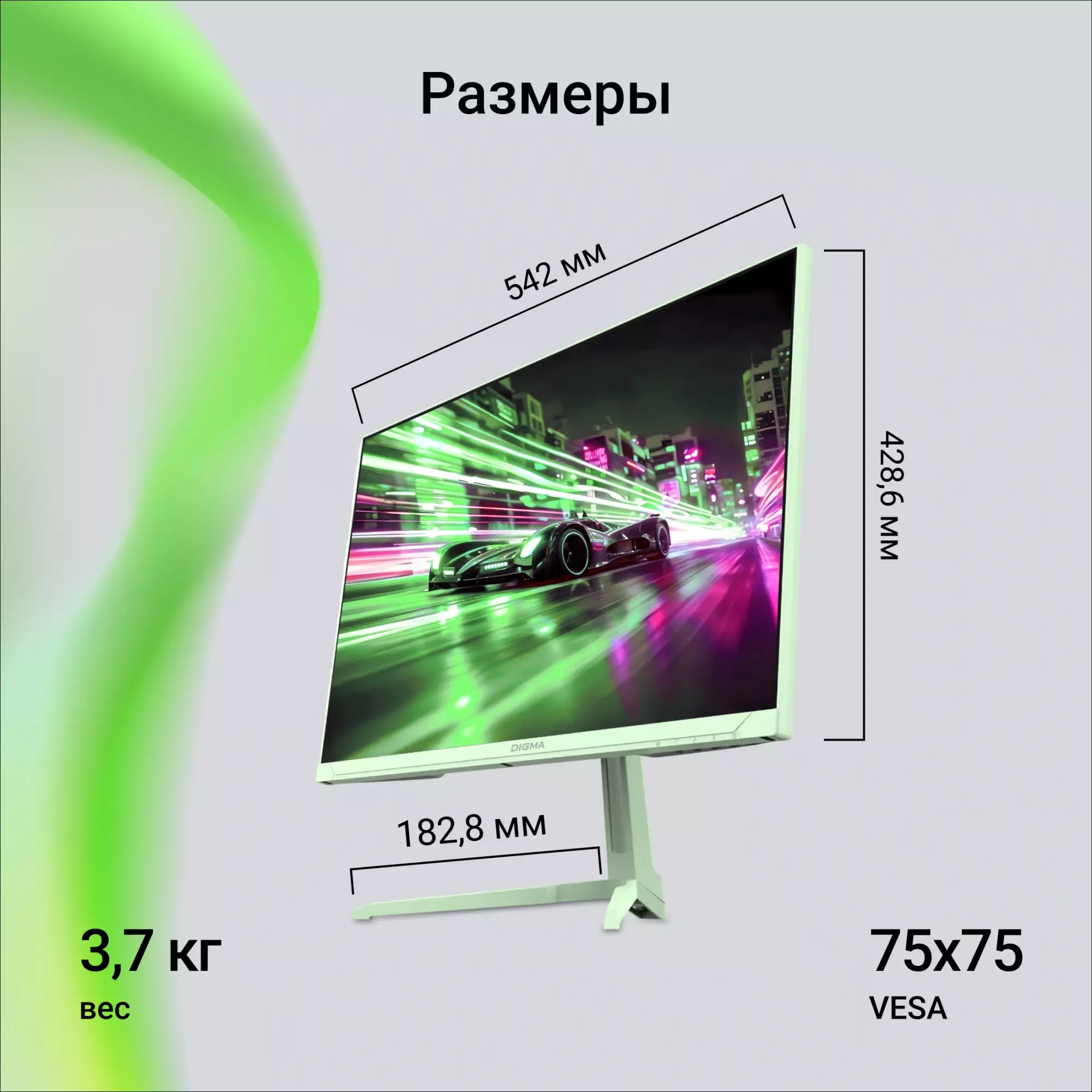 Монитор 23.8" Digma Overdrive 24P410F, 1920х1080, 200 Гц, IPS, мятный (dm24sg03)