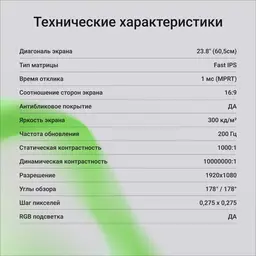 • Диагональ экрана 23.8" (60.45см)