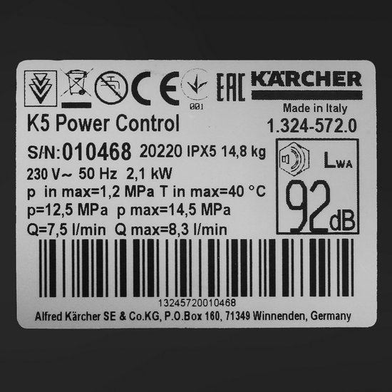 • Комплектация - адаптер для садового шланга, - грязевая фреза, - документация, - пистолет, - струйная трубка, - шланг высокого давления.