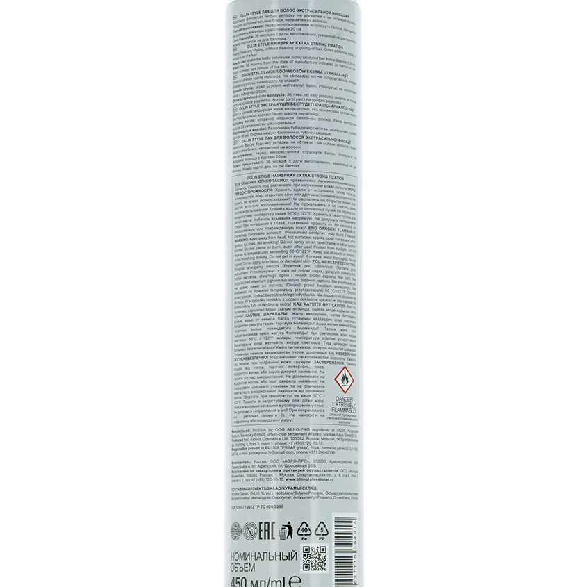 Лак для волос `OLLIN` `PROFESSIONAL` STYLE экстрасильной фиксации 450 мл