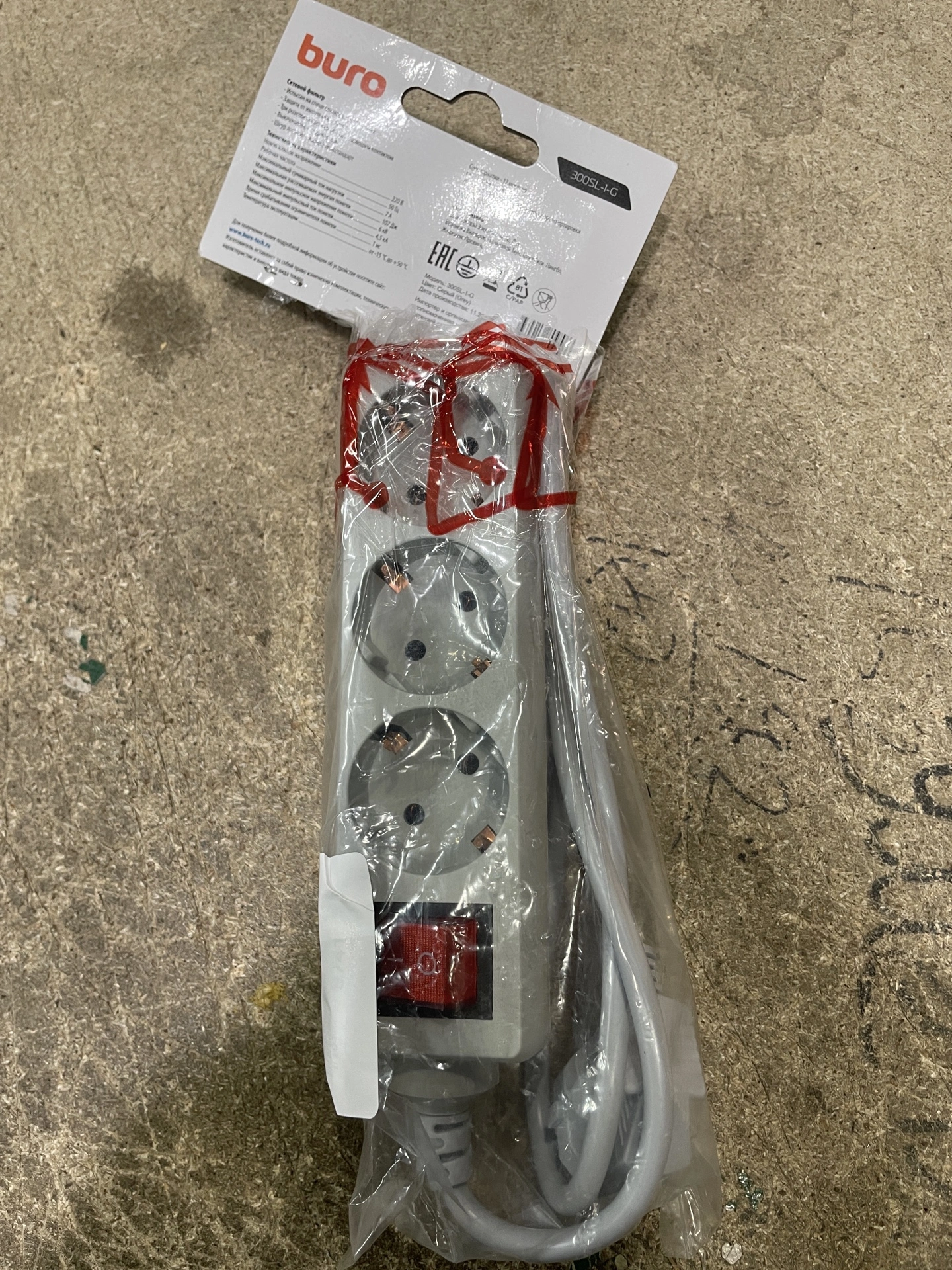 Сетевой фильтр Buro 300SL-1-G 1м (3 розетки) серый (пакет ПЭ) (уценка)