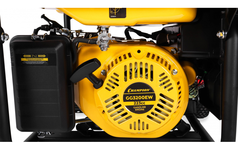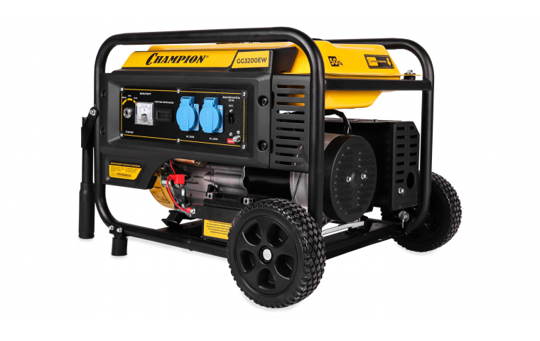 Генератор Champion GG3200EW предназначен для снабжения электричеством приборов мощностью до 3,5 кВт. Высокое номинальное напряжение при небольших габаритах достигается благодаря медной обмотке ротора и статора, а также усовершенствованному блоку AVR. Имеет открытое исполнение, благодаря чему эффективно отводит тепло от рабочих частей устройства. Эффективное отведение тепла от рабочих узлов за счет открытого исполнения. Уверенный быстрый запуск при помощи ручного стартера и наличие электростартера. Средства контроля - счетчик моточасов и индикатор уровня топлива. Возможность одновременного подключения двух электропотребителей. Высокая степень защиты от пыли и влаги - IP23.