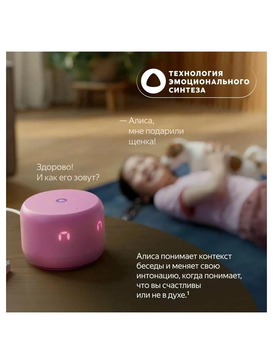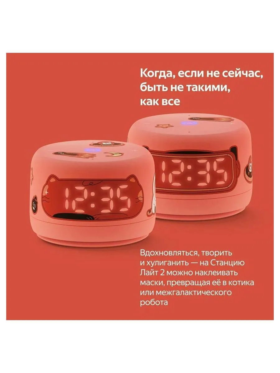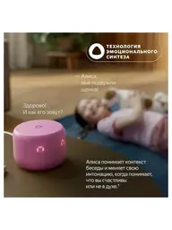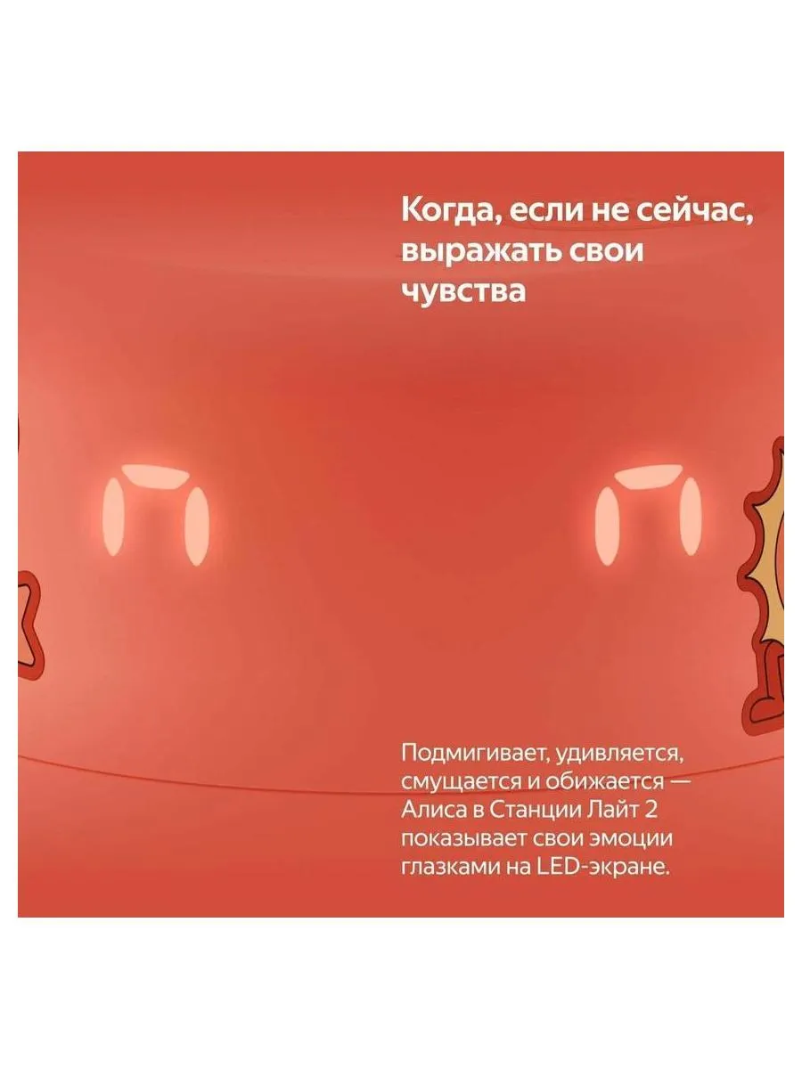 Умная колонка Яндекс. Станция Лайт 2 кораллового цвета ориентирована на детей. Она использует нейросеть YandexGPT, поэтому может отвечать на любые вопросы, находить информацию, рассказывать сказки и включать музыку по настроению. Ассистент реагирует на эмоции, по интонации определяет, в каком настроении находится ребенок. Все «эмоции» Алисы отображаются на информативном экране. Он включает в себя 36 элементов и демонстрирует температуру, время, параметры громкости и другие показатели. Станция Лайт 2 подключается к Wi-Fi-сетям, запоминает несколько сетей, автоматически устанавливает соединение с ними. Для управления колонкой при помощи смартфона через приложение Дом с Алисой она подключается через Bluetooth. На верхней части корпуса расположена панель управления с индикатором. Здесь же находится два микрофона для взаимодействия с ассистентом. Устройство получает питание от сети через USB Type C.