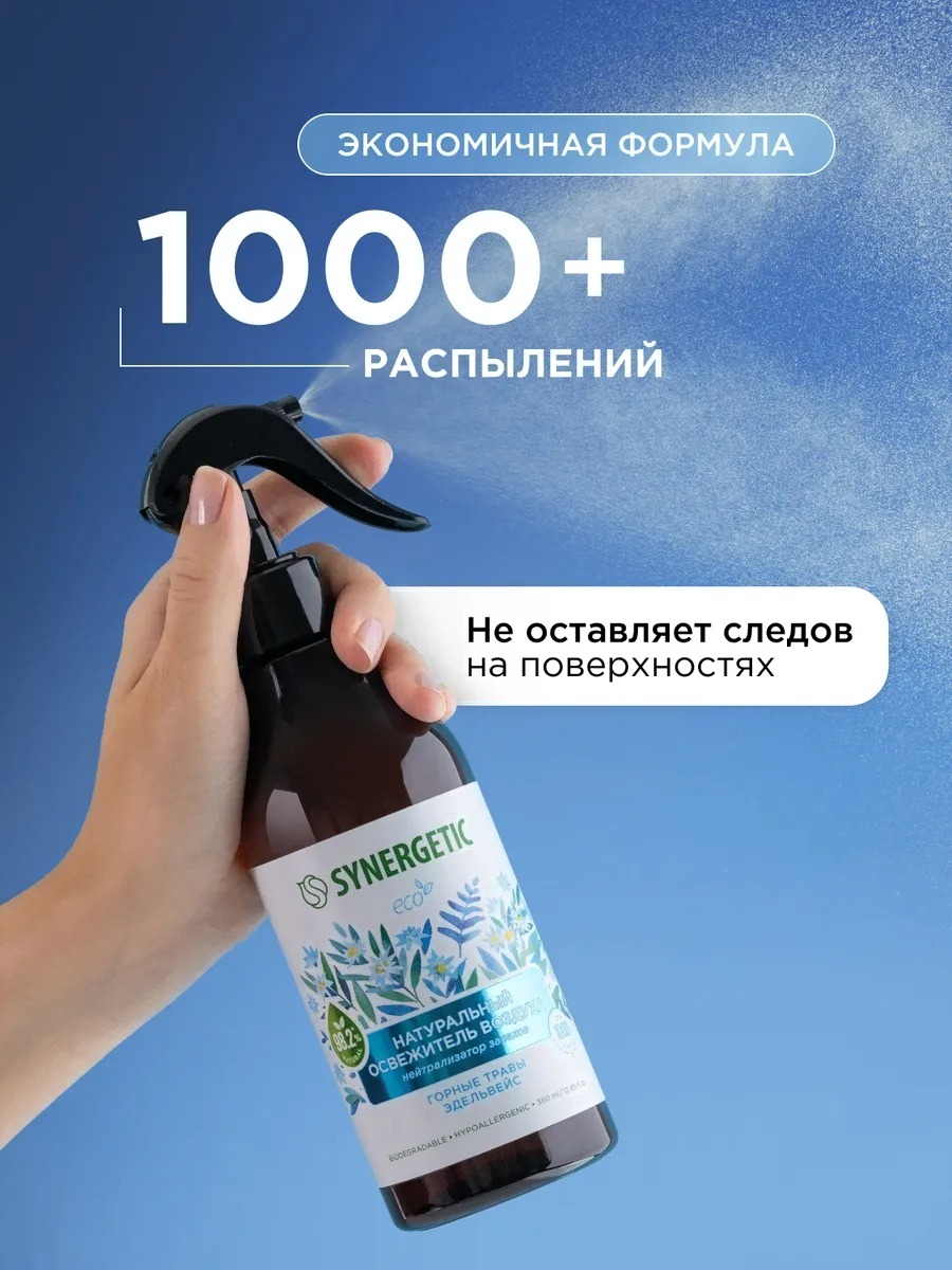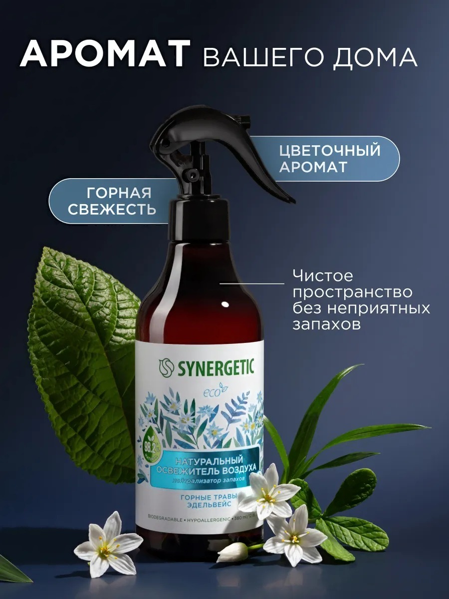 Освежитель воздуха Synergetic Горные травы и эдельвейс. Гипоаллергенный биоразлагаемый (380мл)
