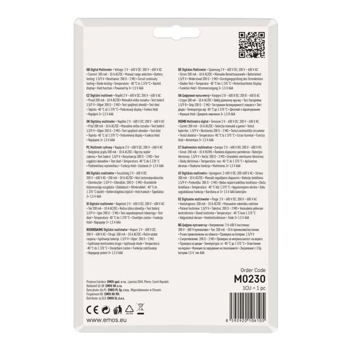 • Особливості автоматичне вимикання , індикація низького заряду батареї , функція утримання показань